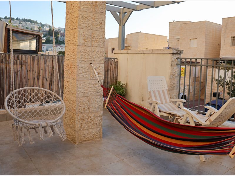 -חצר גדולה עם דשא, צמחיה ומתקנים לילדים (ערסלים, נדנדות, טרמפולינה, בית עץ, בריכת עמודים גדולה בעונה, בימבות ועוד…..)